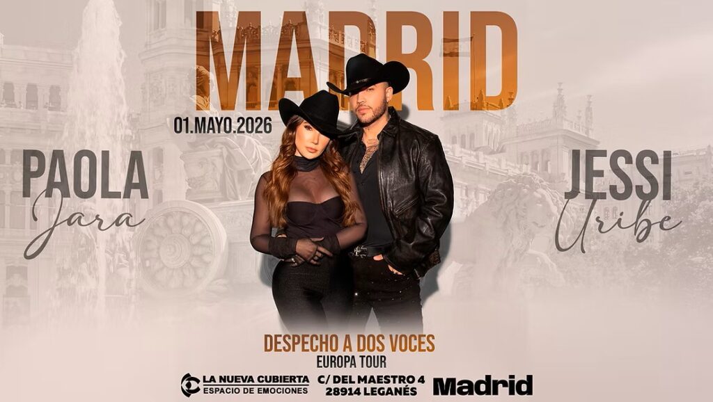 La espera terminó! Dos de las voces más grandes de la música popular llegan a España con un concierto único e inolvidable. Jessi Uribe y Paola Jara se presentan en Madrid con su gira “Despecho a Dos Voces – Europa Tour”, un show cargado de emociones, éxitos y todo el poder de la música popular colombiana.